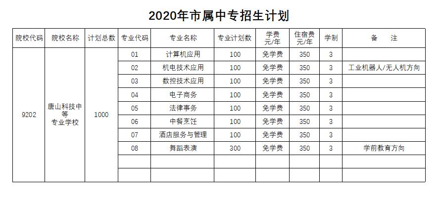 唐山科技中等專業(yè)學(xué)校2020年招生計(jì)劃