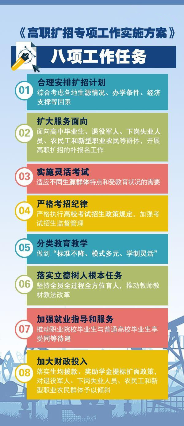 隨著高職學(xué)生人數(shù)攀升,教育質(zhì)量如何保證?為此,王繼平指出,將用優(yōu)質(zhì)校拉動(dòng)一般校,提高優(yōu)質(zhì)職業(yè)教育資源使用效率,加強(qiáng)辦學(xué)條件薄弱公辦高職院校改造,整體提升辦學(xué)水平。同時(shí),通過(guò)資源整合挖潛一批、專項(xiàng)培訓(xùn)培育一批、校企合作解決一批、“銀齡講學(xué)”補(bǔ)充一批、社會(huì)力量兼職一批,加快補(bǔ)充急需的專業(yè)教師。另外,用教學(xué)改革保證,針對(duì)不同生源特點(diǎn),分類編制專業(yè)人才培養(yǎng)方案,采取彈性學(xué)制和靈活多元教學(xué)模式,創(chuàng)新教學(xué)組織和考核評(píng)價(jià),加快學(xué)歷證書(shū)和職業(yè)技能等級(jí)證書(shū)互通銜接,有序開(kāi)展學(xué)習(xí)成果的認(rèn)定、積累和轉(zhuǎn)換。