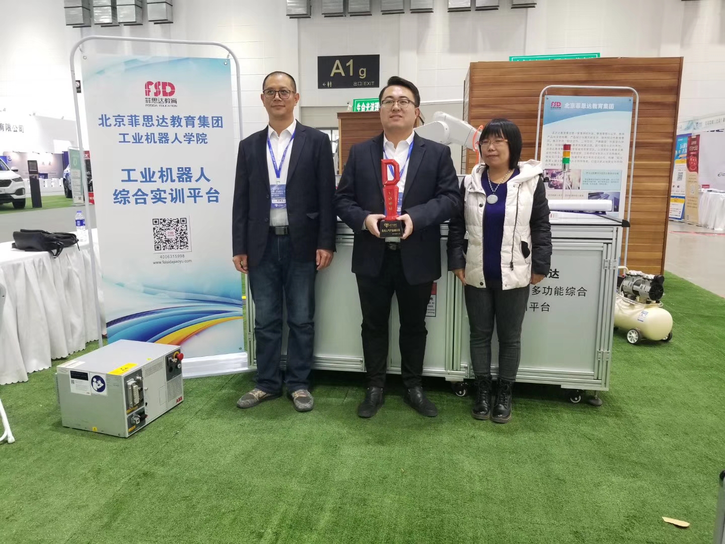 筆者在現(xiàn)場看到,北京菲思達教育集團科技中,F(xiàn)場展示的綜合實訓平臺,機器人現(xiàn)場用毛筆寫下“中國夢”三個大字。據(jù)了解,